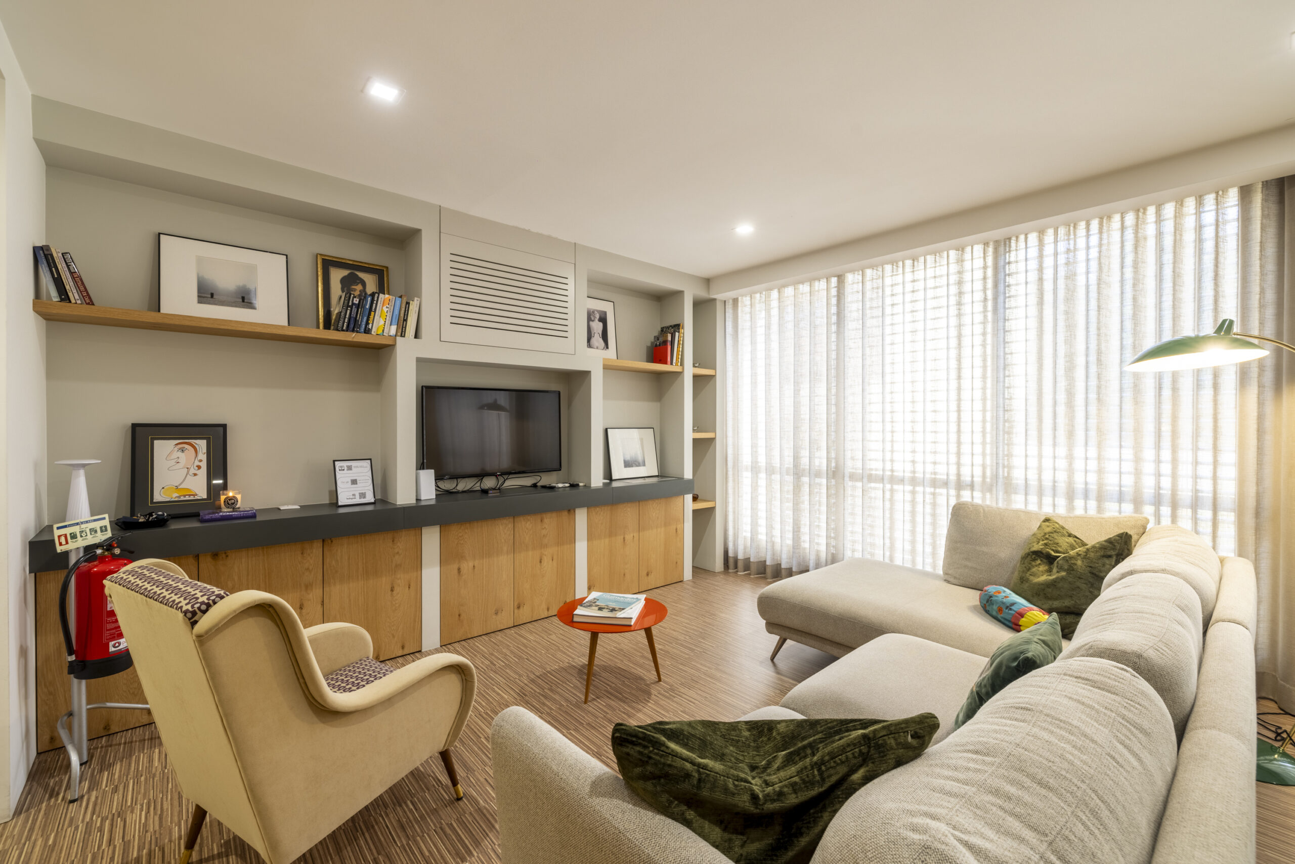 Disponibiliza acesso Wi-Fi gratuito, ar condicionado, uma televisão de ecrã plano,frigorifico,forno,microondas,